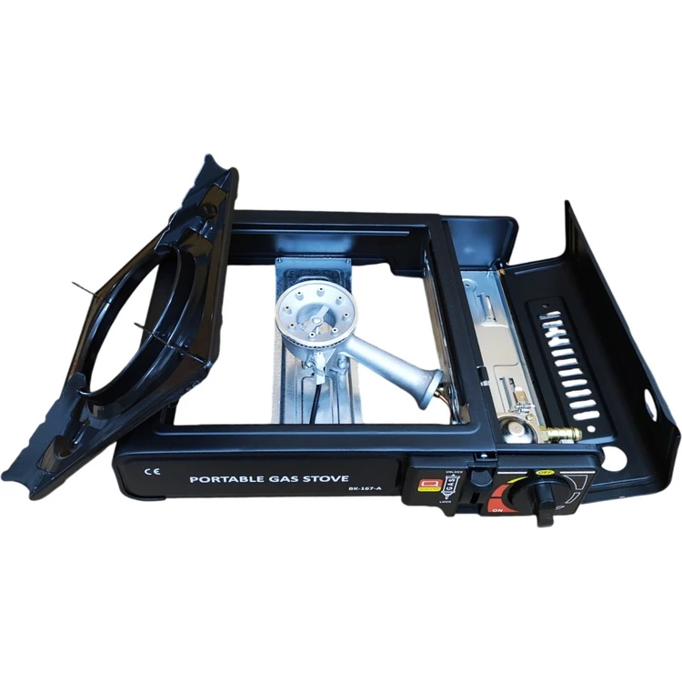 اجاق سفری فندکی کیف دار portable gas stove از طراحی ساده و کاربردی برخوردار است، و با اندازهی نسبتا کوچکش انتخابی عالی برای علاقهمندان به سفر و کوهنوردی و طبیعت گردی وکمپینگ محسوب میشود. علاوه بر اندازهی کوچک، یک کیف پلاستیکی نیز برای این اجاق طراحی شده است تا با قرار دادنش داخل آن، حمل و جابهجاییاش به سادگی صورت گیرد. در ساخت بدنهی این محصول از فلز استفاده شده است که علاوه بر مقاومت در برابر حرارت و گرما، عمری نسبتا طولانی دارد. از ویژگیهای این مدل تعبیه یک دکمه برای کم و زیاد کردن شعله، اتصال به سیلندر گاز خانگی، اتصال به سیلندر های استوانه ای کوچک، داشتن کلید قفل محفظه سیلندر جهت ایمنی بیشتر حین استفاده و دارای فندک جهت سهولت در استفاده است. با همراه داشتن این اجاق سفری به راحتترین شکل ممکن غذاهایی ساده و خوش طعم در طبیعت و فضای باز طبخ کنید. یکی دیگر از مصارف این اجاق برای مکانهایی میباشد که شیر گاز موجود نیست.