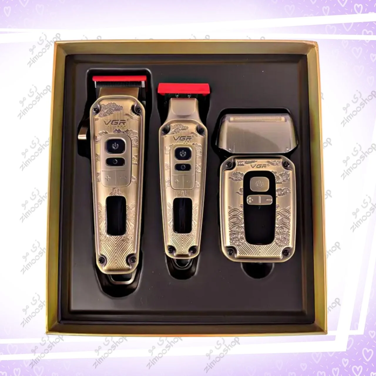 یک حجمزن یا کلیپر vgr 005 ، خطزن یا تریمر vgr 901 و یک شیور فویلی vgr 337 می باشد .
