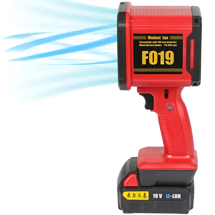 جت فن و دمنده Violent Fan مدل F019 با ابعاد ۲۹*۱۲*۹.۵ سانتیمتر و وزن با باطری ۸۵۰ گرم، بهراحتی در دست جای میگیرد و حمل آن آسان است. بدنه این دستگاه از پلاستیک ABS با کیفیت بالا ساخته شده است که علاوه بر
