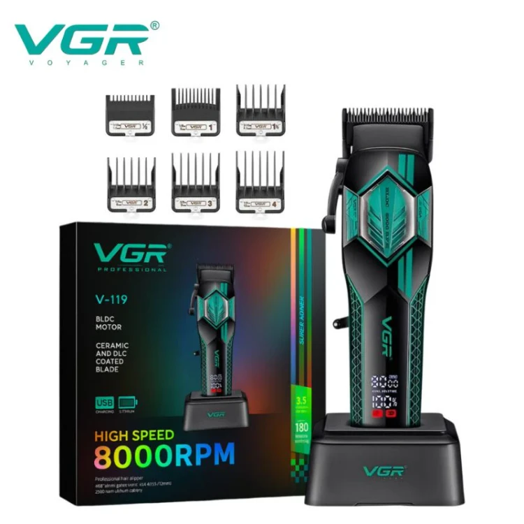 موتور قدرتمند دستگاه عملکردی روان و کمصدا دارد و در استفادههای طولانی باعث خستگی دست نمیشود. طراحی خوشدست و وزن مناسب این ماشین اصلاح، کنترل بالایی هنگام کار ایجاد میکند. V-119 برای آرایشگران حرفهای و همچنین استفادهی شخصی در منزل گزینهای اقتصادی و کارآمد محسوب میشود.